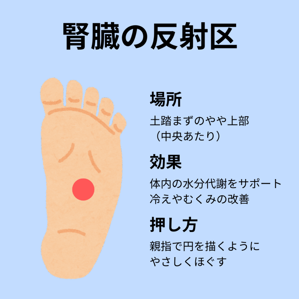 - 特に「湧泉」「腎臓の反射区」「三陰交」が効果的