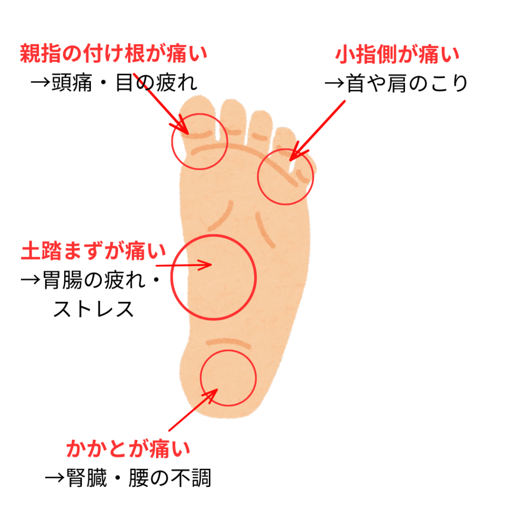 • 土踏まずが痛い → 胃腸の疲れ・ストレス