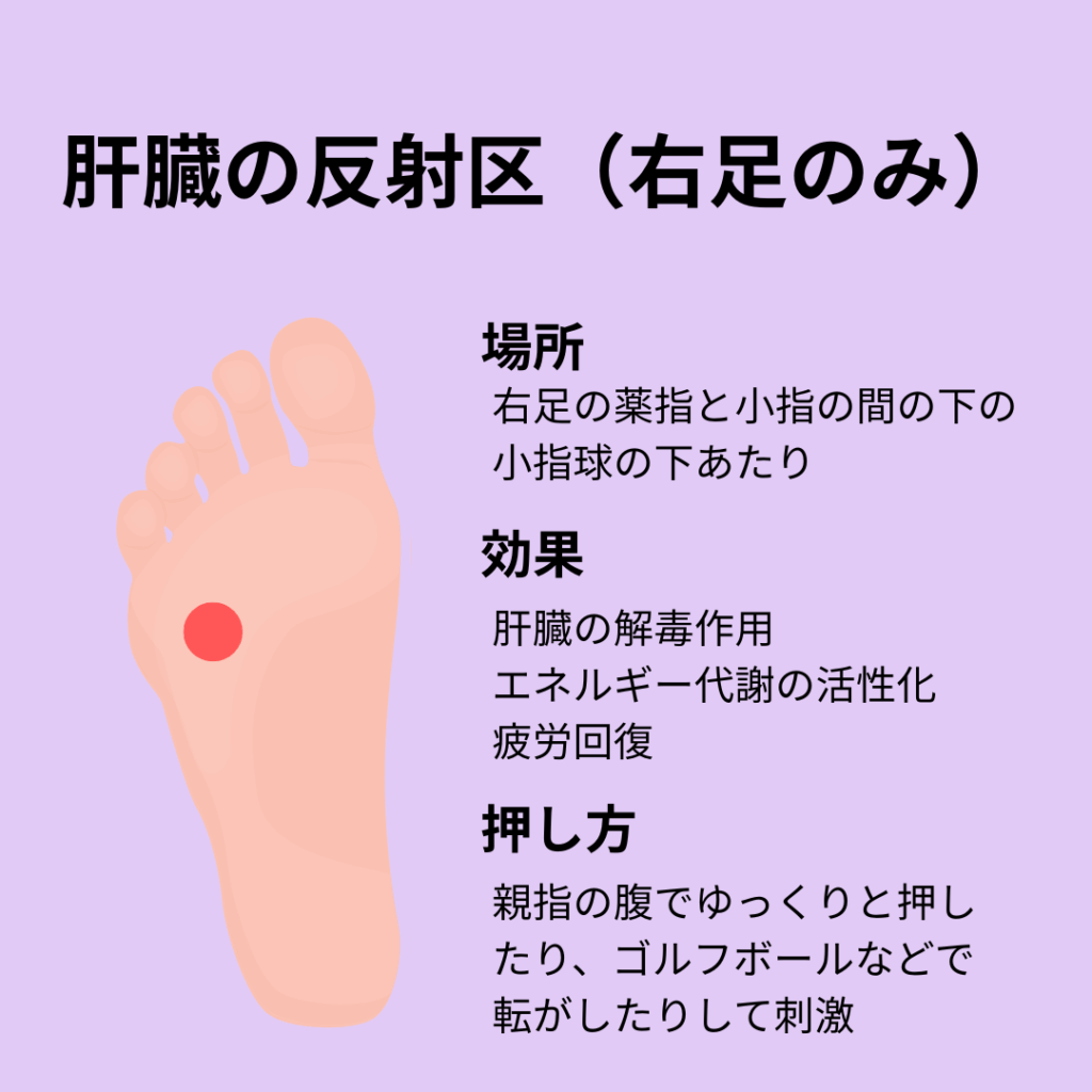 - 肝臓・胆のうの反射区:右足裏の中央より少し外側。日中のストレスで溜まりがちな“重だるさ”を流すイメージで。