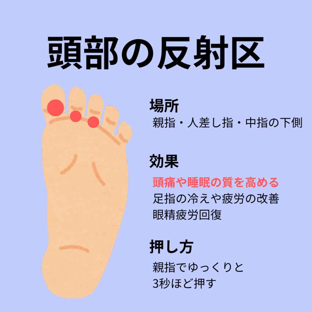 ④ 足の指の付け根(頭部の反射区:親指・人差し指・中指)